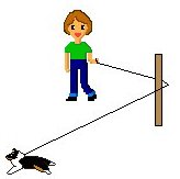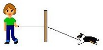 Altså hvis hunden og mennesket går på hver sin side af en stolpe, så træder